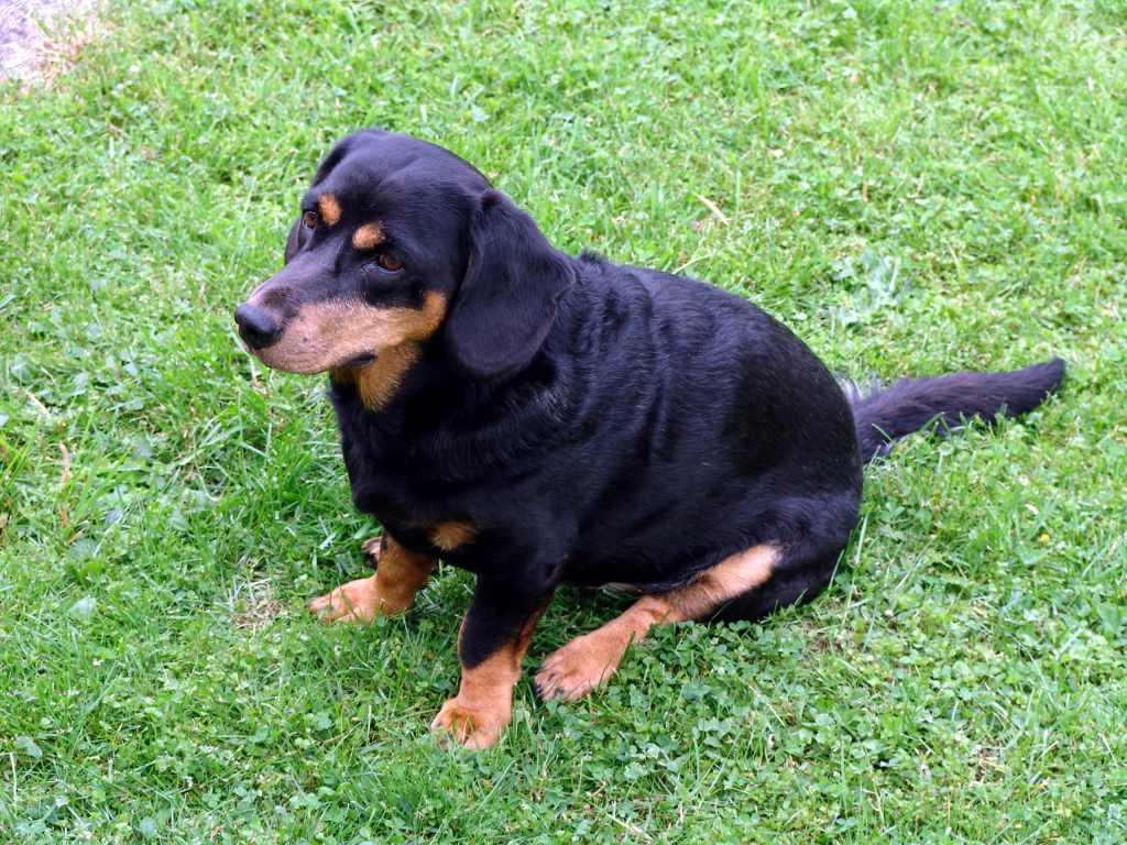 Alpine Dachsbrackes are built to work, which makes them look deceptively “solid” even when they are carrying extra weight. For a low-set dog, that extra load can matter. Keeping the dog lean supports joints and stamina, and it tends to make training easier because food rewards stay meaningful.