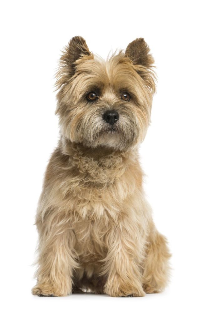 Cairn Terrier looking alert with upright ears
