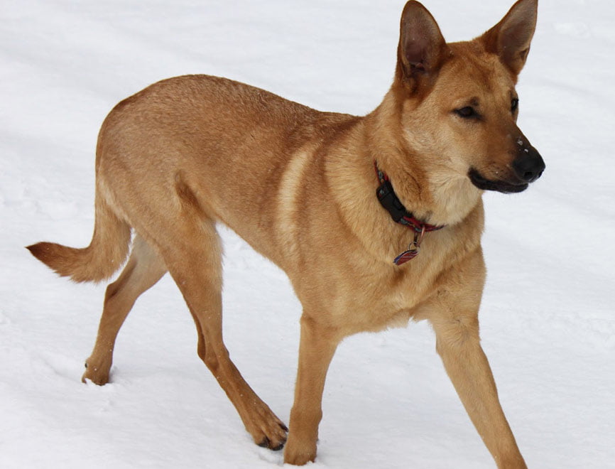 Chinooks are medium to large, balanced, and athletic. They usually have a tawny coat that can range from pale honey through to deeper red-gold, often with darker shading around the ears and muzzle. Their outline reads “working dog” in a quiet way: strong through the body, not exaggerated, built to keep going. 4