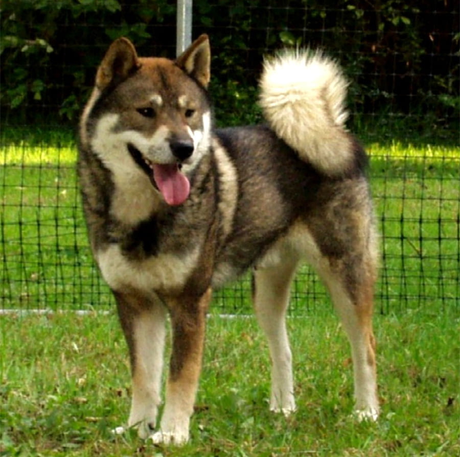 In person, the Shikoku reads as compact and athletic rather than heavy. The breed standard describes a medium-sized dog with well-developed, clean-cut muscles, pricked ears, and a curled or sickle tail carried over the back.1