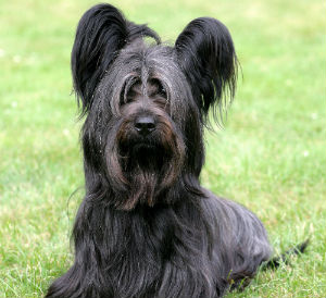 Skye Terrier facing camera with long coat