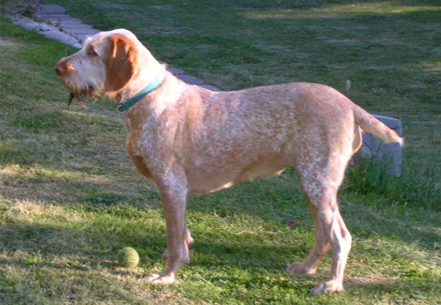 Breed group: gundog (pointing dog type). Origin: Italy. General build: solid, squarely built, strong-boned, with a harsh, protective coat and characteristic beard and eyebrows.1