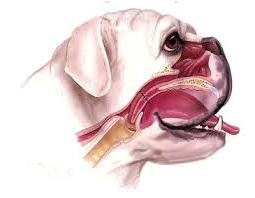 BOAS is a collection of anatomical changes that restrict airflow in the upper airway. The best known contributors include narrow nostrils (stenotic nares), an elongated or thickened soft palate, and changes around the larynx that can worsen over time as the dog works harder to breathe.2, 3